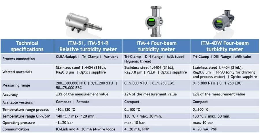 I sensori di torbidità della serie ITM sono progettati in conformità agli standard internazionali per le attrezzature di lavorazione alimentare, come 3-A, EHEDG e FDA. Ciò include l’eliminazione dei punti morti e la facilità di pulizia. L’intero sensore, dalle parti bagnate all’alloggiamento, è realizzato con materiali di altissima qualità: