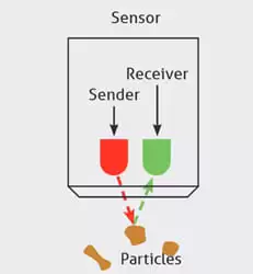 Una sorgente luminosa a LED emette luce infrarossa da un diodo sulla punta del sensore nel mezzo attraverso un sistema ottico in zaffiro altamente resistente. Le particelle presenti nel fluido riflettono la luce irradiata, che viene rilevata dal diodo ricevente sulla punta del sensore (il cosiddetto metodo della luce retrodiffusa). L’elettronica calcola la torbidità relativa del mezzo in base al segnale ricevuto. Questo metodo di misura è ideale per la misurazione di fluidi con torbidità medio-alta (200…300.000 NTU).